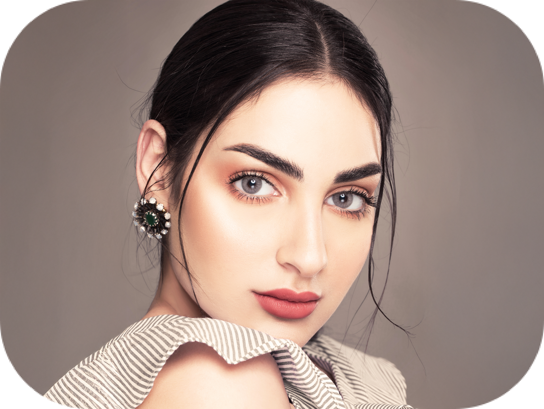 عدسات مريحة بمزيج من اللون البني الفاتح والرمادي الفاتح مع حلقة حول القزحية بلون بني داكن. مناسبة للبشرة الفاتحة. استمتعي بلون عيون جذاب مع عدسات كابري كولور من ماي لينز.